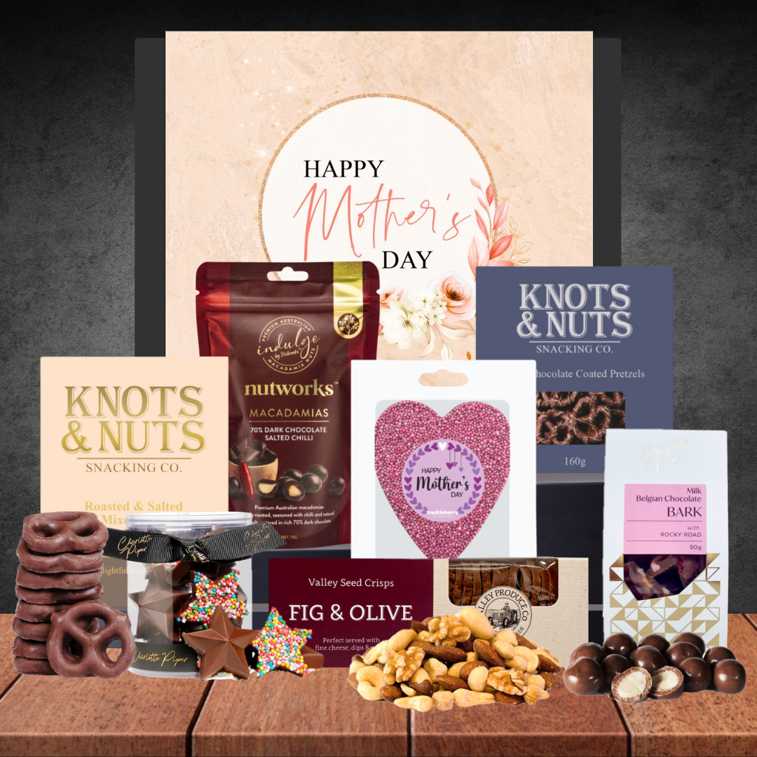 This Gourmet Mother's Day Gift Hamper is presented in a premium gift box which is packed with stylish tissue paper and finished with a "Happy Mother's Day" decorative sleeve, and a free "Mother's Day" greeting card, printed with your personalised message.