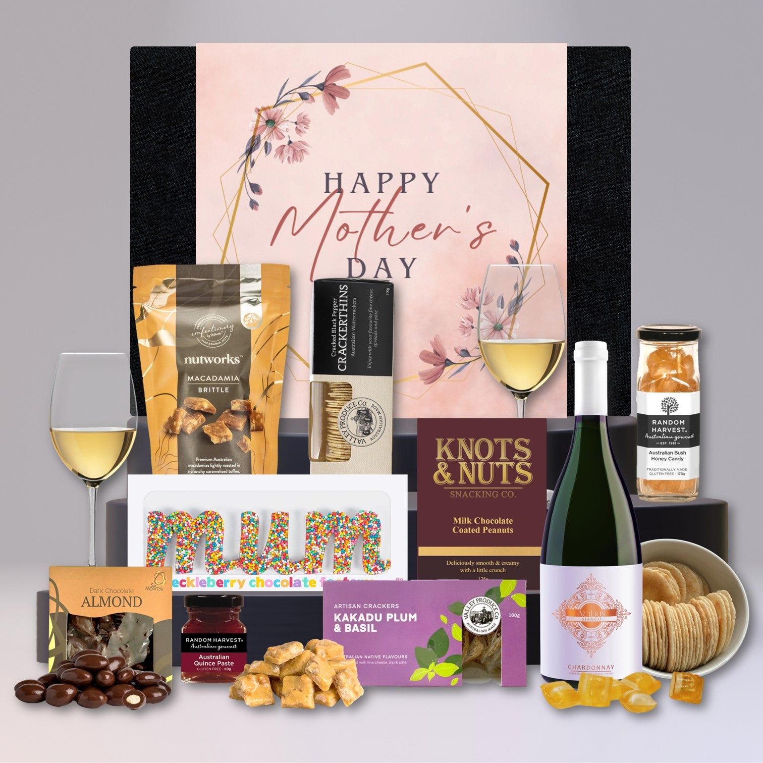 Time for some Mother's Day celebrations! This wonderful gift hamper is a true delight to celebrate this Mother's Day. With a range of delicious sweets and a bottle of Atilius Chardonnay, mum will know she's amazing with this wonderful gift this Mother's Day.