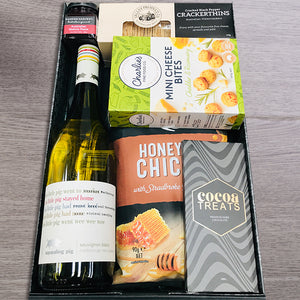 Looking for the ideal gift for a special occasion? This delightful hamper is just what you need! Packed with a variety of snacks and New Zealand's Squealing Pig Sauvignon Blanc, it offers a delectable assortment from crackers and quince to chocolate-sprinkled stars. It's the perfect combination of treats to enjoy with a glass of Squealing Pig. Make your next celebration extra special by popping open this bubbly and enjoying the treats in this hamper!