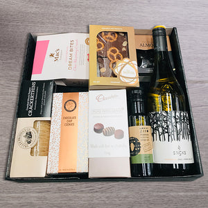 Crisp chardonnay and some wonderful treats makes for a stunning wine hamper. Featuring Australia's Sticks chardonnay, delicious dukkah, truffle oil, chocolates and melting biscuits, this is a perfect gift for someone special.