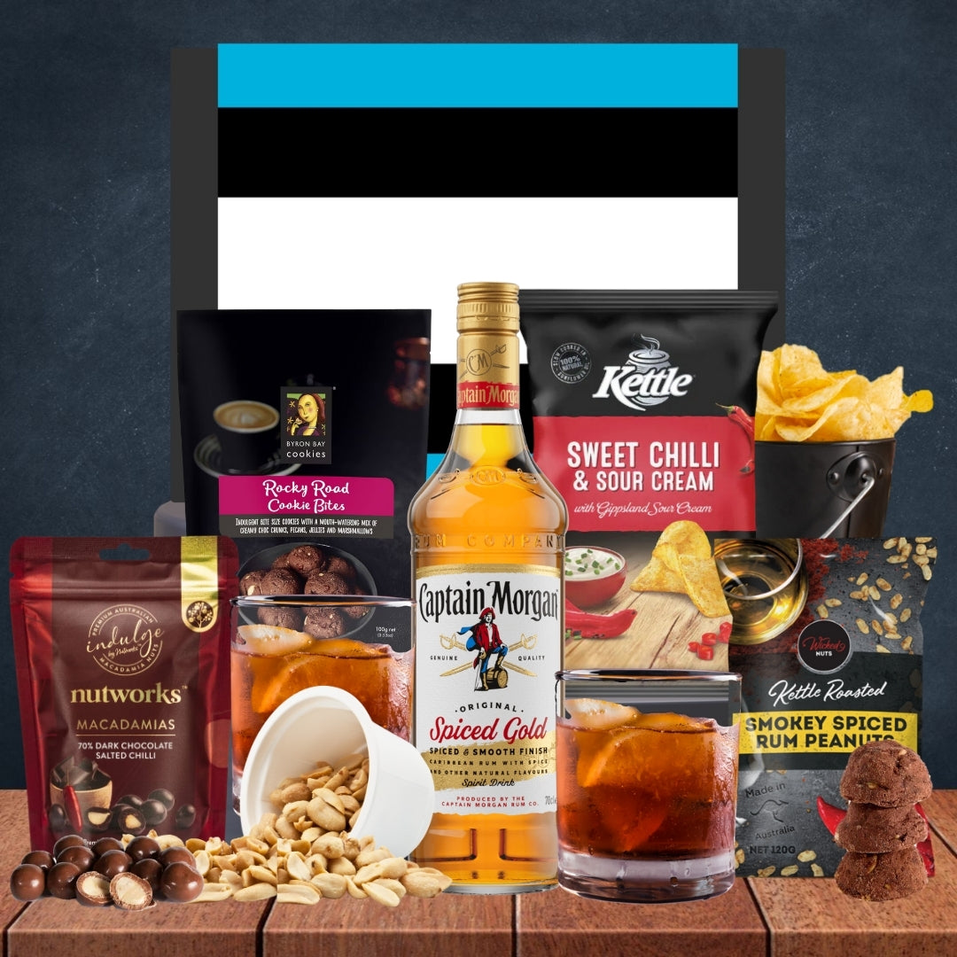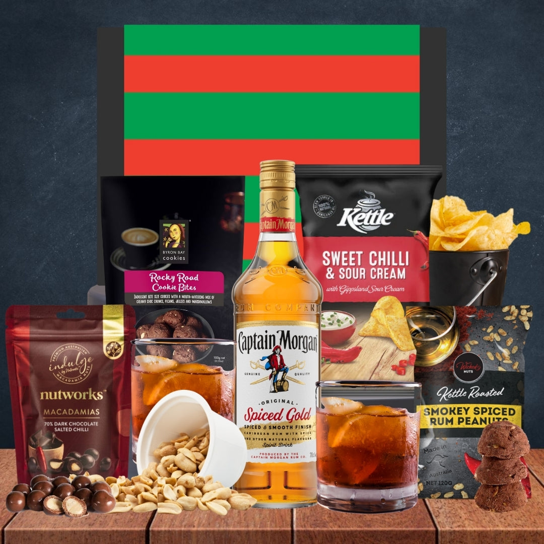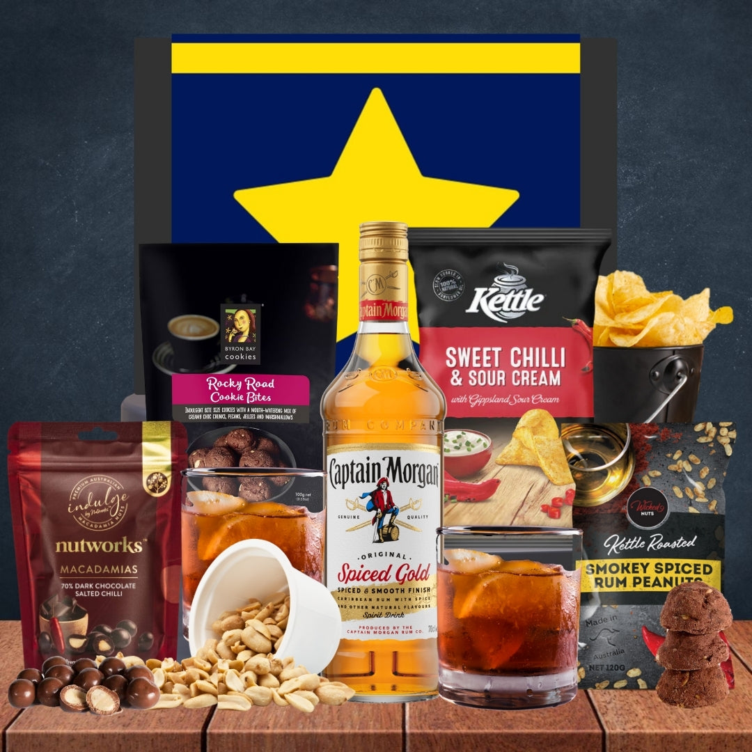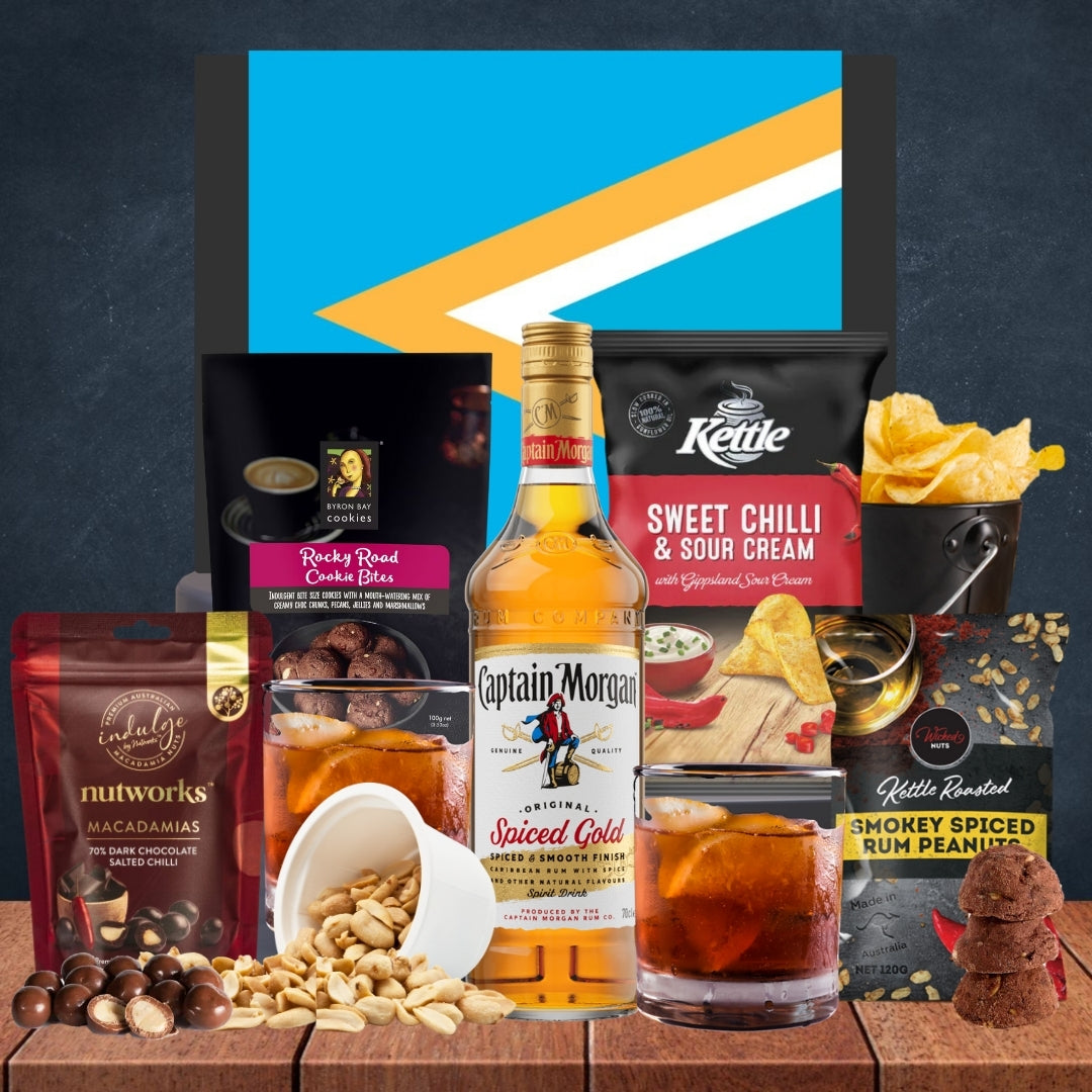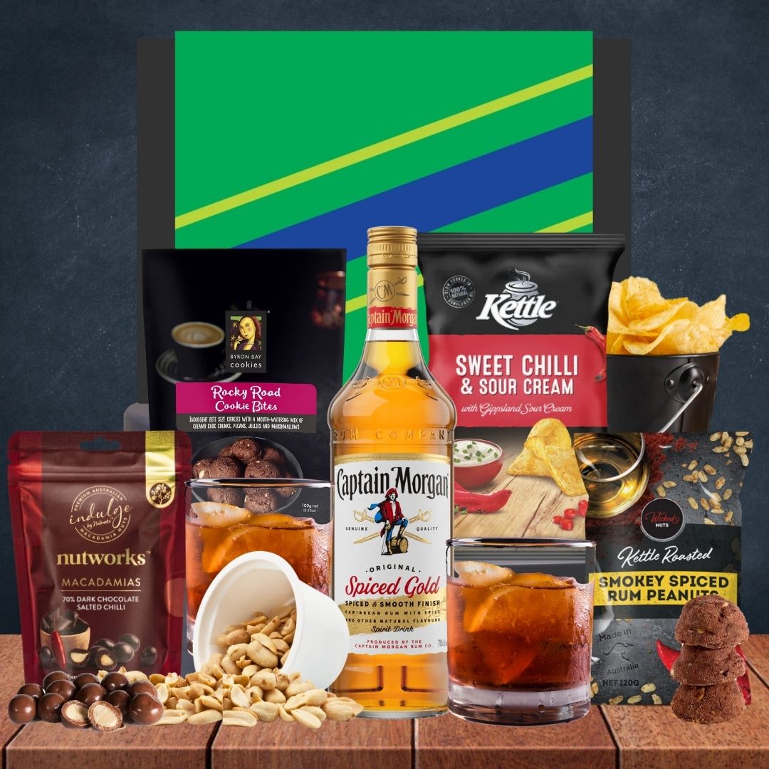 Watch the game with Captain Morgan! Open your doors to a series of games with this NRL snack hamper. Featuring a delightful collection of snacks, you and your game buddies can...