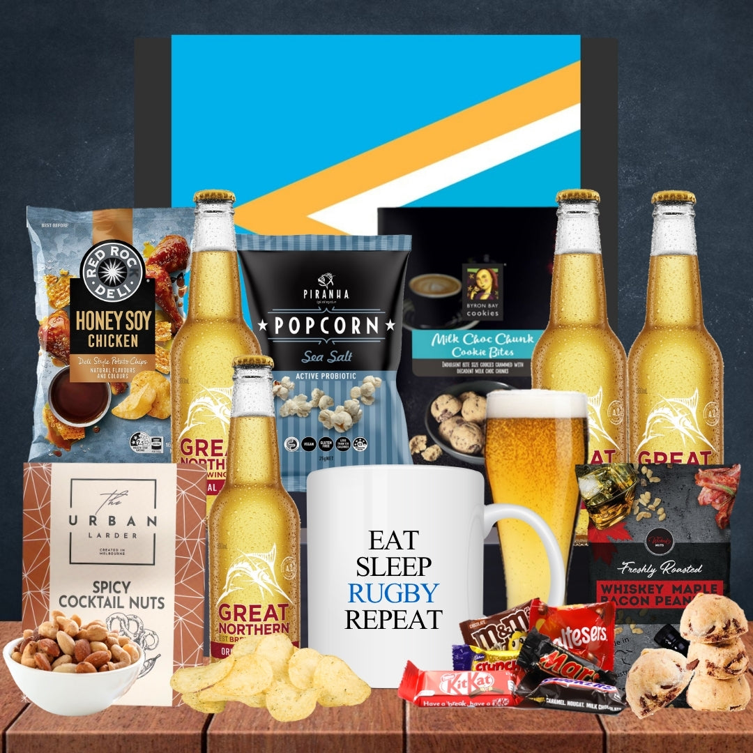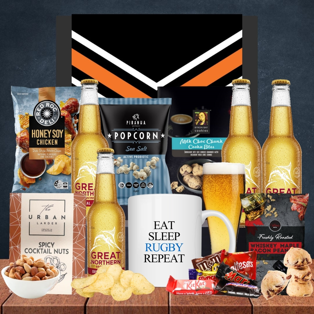 Open your doors to a series of games with this NRL snack hamper. Featuring a delightful collection of snacks, you and your game buddies can enjoy a series of matches with sweet and savoury delights.