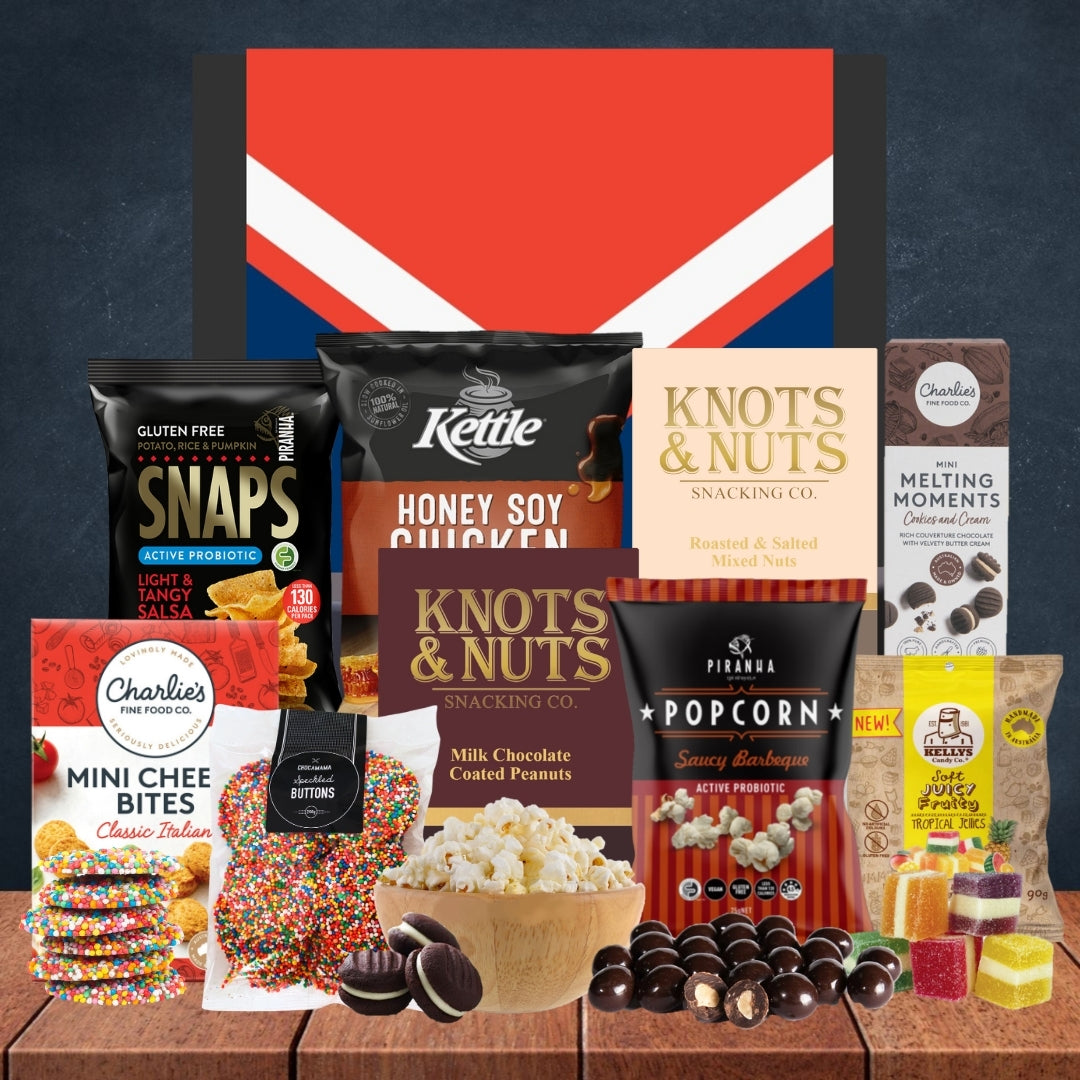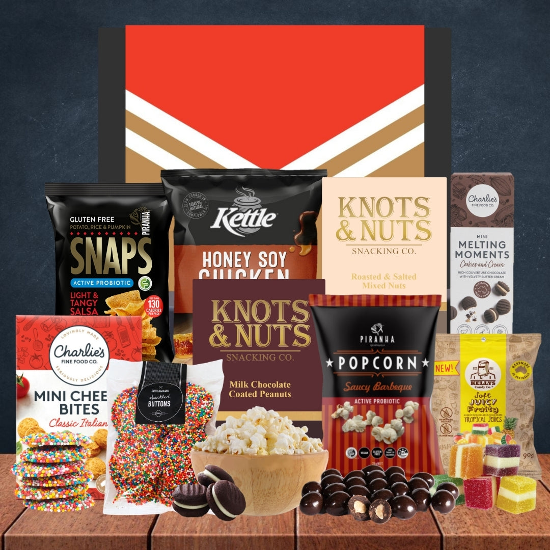 NRL Fans Rejoice!  Open your doors to a series of games with this NRL snack hamper. Featuring a delightful collection of snacks, you and your game buddies can enjoy a series...