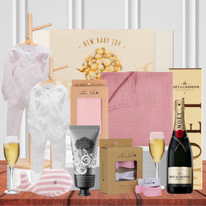 You can put together the best baby shower for expecting parents with a stunning baby girl baby shower gift from us. This hamper features a collection of products for the baby girl and the parents-to-be. The highlight of this hamper is a gorgeous bottle of Moët Brut Impérial Champagne NV for the parents to enjoy. For the baby, we have included items like grow suits, pram clips, and muslin wraps. Parents are truly going to be grateful for your kind gesture with this hamper.