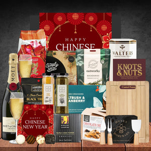 Mark the beginning of the Lunar calendar with this gourmet surprise that is sure to leave your recipients in complete awe! This hamper has all the delicious trimmings with a stunning bottle of Moët Champagne, Belgian chocolate, Chocolate Chip Cookies, Rosemary & Sea Salt Macadamias and more! It's deliciously divine and will promise you the best. Perfect for all your Chinese New Year greetings!