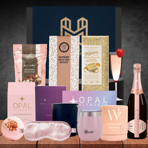 Perfect for her! With a mini bottle of sparkling Rosé, a Cheeki Wine Tumbler, indulgent bath salts, and delicious treats, this makes for the perfect gift for her Birthday, Anniversary, a gift of Wellness, or just because she's amazing. Give her the gift of relaxation with this amazing gift.