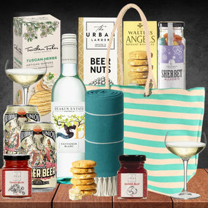 Sun, Surf & Sauvignon Looking for the perfect gift for beach-loving foodies? This Aussie Picnic Hamper has everything they need for a feast under the sun! Packed in a stylish striped...
