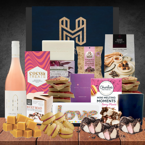 A pamper gift for someone special. This beautiful gift for her comes with a bottle of delicious rosé to sip on, a scented candle, indulgent chocolate, mouth-watering biscuits, and delicious sweets to enjoy. She'll be melting into delightful relaxation with this pamper treat.