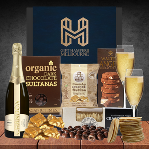A golden gift of bubbles is always well received. This gift features a bottle of iconic Chandon along with crackers, biscuits and chocolate sultanas. Perfect for any occasion from Birthday's to Sympathies, this gift hamper is a winner.