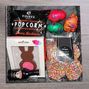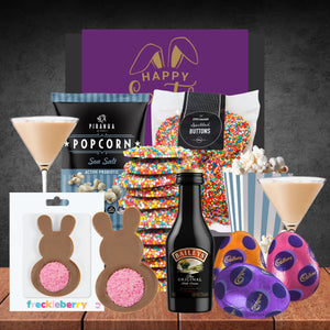 An Easter gift that has all the necessities - Chocolate & a little alcohol. Try pouring your Baileys with some milk, into the Easter egg, top with whipped cream and a toasted the marshmallow. YUM! Want something cute and yummy, with a little adult beverage? Our Treat Boxes are a perfect little refreshing gift to wet-the-whistle with mini alcoholic beverages and a collection of delicious goodies to enjoy.