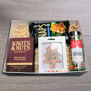 A snack delight. This festive snack box has all your snack craving needs in one. With chips, chocolate, and nuts, they'll have a Snack Happy Christmas.