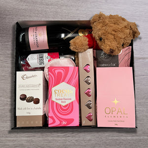 A deluxe Valentines pamper hamper that comes with the amazing Moët Rosé Impérial Champagne. Add in a crystal facial roller, silky eye mask, and delicious gourmet treats to indulge in and you have an amazing pamper gift for her.