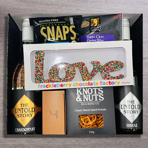 Simply Sparkling Add some effervescent joy to their Valentine's. This gift boasts a simple blend of sweet and savoury treats, accompanied by 2 bottles of The Untold Story Premium Wines. Send...