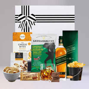 The Perfect Gentleman Or woman! This gourmet whisky gift featuring Johnnie Walkers Green Label, paired with premium savoury snacks and creamy chocolate is the perfect gift for him no matter the...