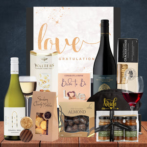 This hamper conveniently features 2 Lav Odin Empire red wine glasses, Honey Homeware eye masks, a Bride-to-be chocolate box and a bunch of enticing snacks. Whether your bride-to-be is into sweet or savoury snacks, gift her the best of both worlds with this elegant hamper!