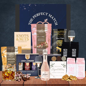 This special Gift Hamper is presented in a premium gift box which is packed with stylish tissue paper and finished with a special Wedding decorative sleeve, and a free "For You" gift card, printed with your personalised message.