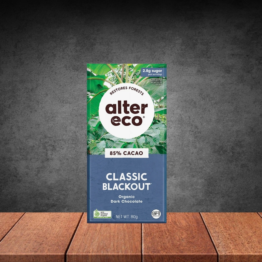 ALTER ECO Organic Chocolate Dark Blackout 80g for the perfect pure organic cocoa and unrefined organic cane sugar.
