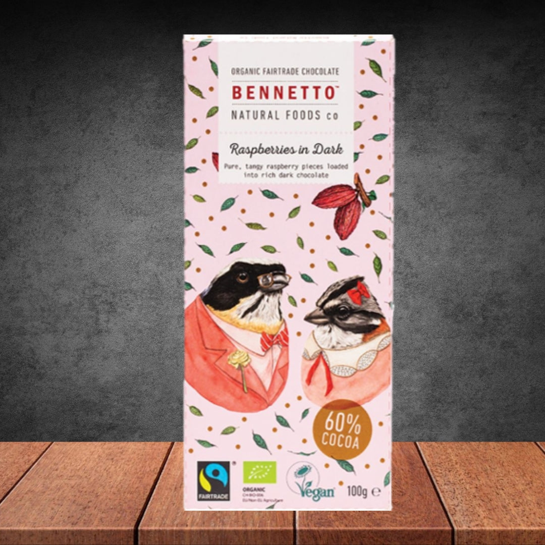 Bennetto Organic Raspberries in Dark Chocolate 100g
