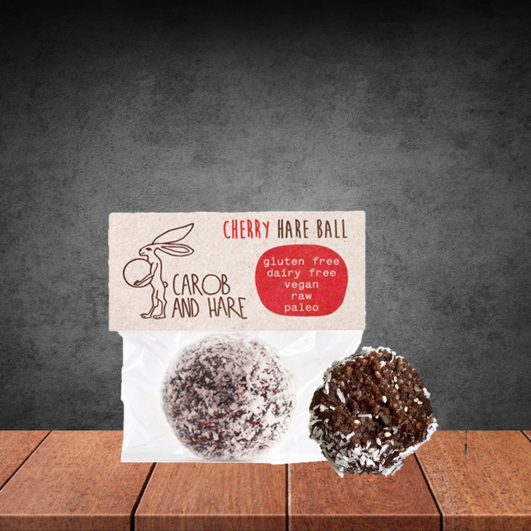 The Carob & Hare Cherry Hare Protein Ball is a 26g, handcrafted, vegan, raw, and paleo-friendly snack made in Australia.