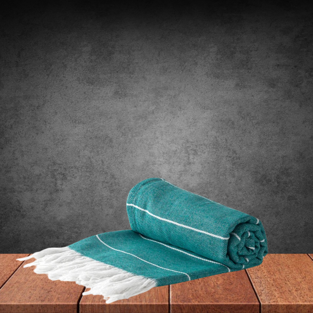 Soft, absorbent Turkish towel in aqua, designed for comfort and effortless seaside style.