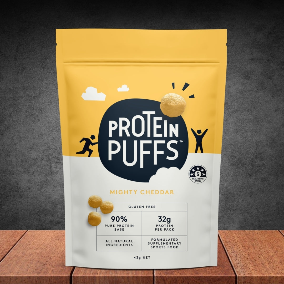 Our Mighty Cheddar Protein Puffs are a light cheesy snack that will have