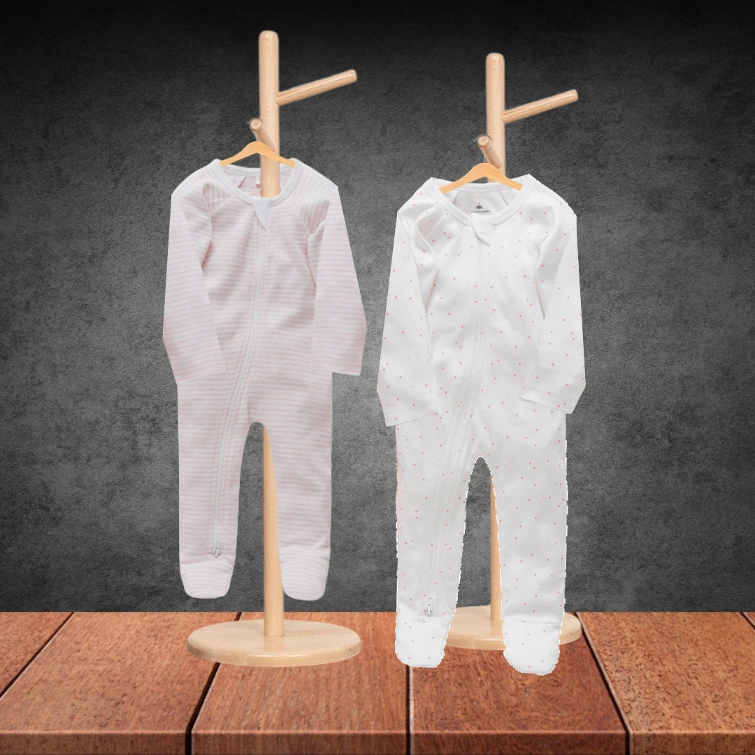 PureBaby 2 Pack Zip Growsuit Pale Pink Girls
