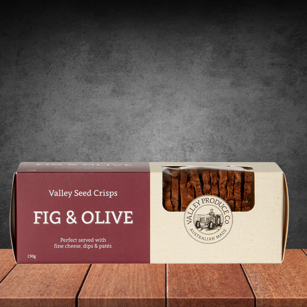Treat yourself to the sophisticated blend of Valley Produce Co Fig & Olive Crisps.