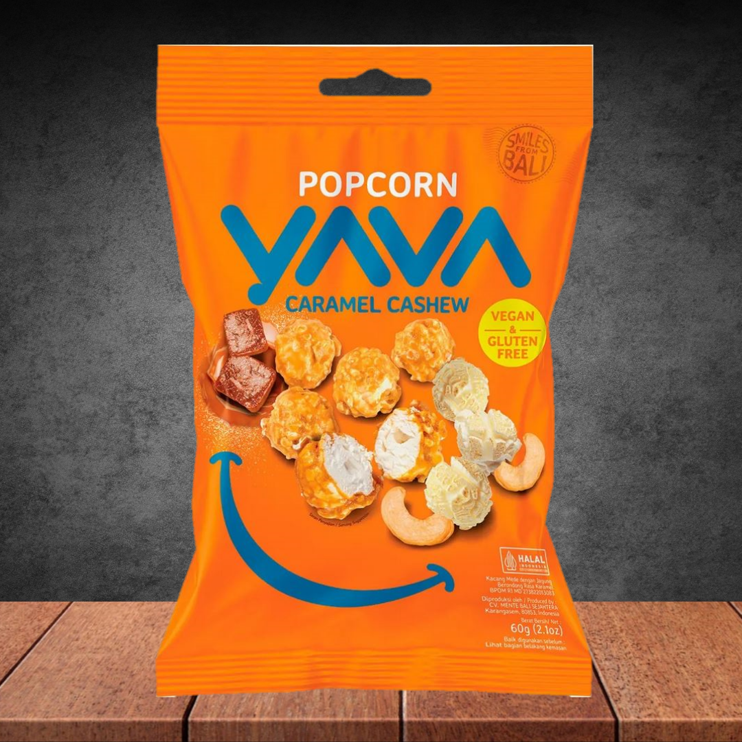Treat yourself to the gourmet delight of Yava Popcorn Caramel Cashew 60G!