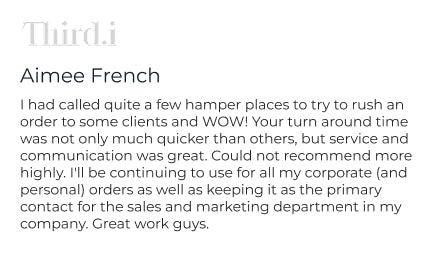 We have special offers for your business needs and can customise your gifts with your branding on box sleeves and ribbons, personalised wine, beer and chocolate boxes, along with mugs, water bottles and more. You will have a dedicated account manager to assist you with your order, we have no setup fees and in-house graphic design available at no extra cost.