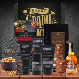 Gift your newly grad the ultimate relaxation bundle featuring a Chivas Regal 12 year old blended scotch whisky! This smooth whisky feels like crisp orchard fruits, wild heather and sweet honey on the palate. Let them pair their relaxation drink with a handful of whisky maple bacon infused peanuts and Belgian dark chocolate, all while they indulge in their skincare routine with Handsome face and hair products!