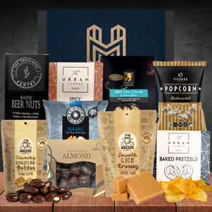 The Snack Hamper with spicy cocktail nuts, beer nuts and chips is the perfect gift for the Snack lovers in your life. This gorgeous snack hamper features a range of delightful flavour combinations for them to experience at home or to share with their colleagues.